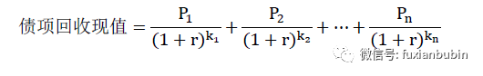 公式中,清收成本現值則是違約債項清收所發生的直接和間接成本的現值總和。而債項回收現值的計算,是債項自違約時點起所有屬于該債項的實際回收現金流在違約時點的現值總和。計算公式為: