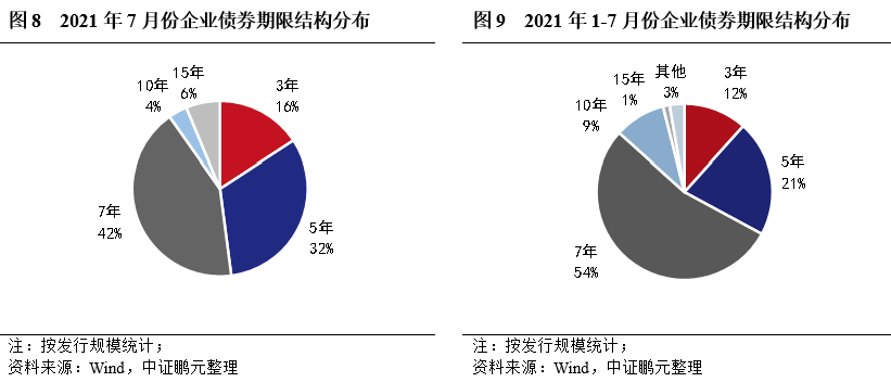 3. 7年期為企業(yè)債券主力期限品種,3年期和5年期品種占比環(huán)比上升