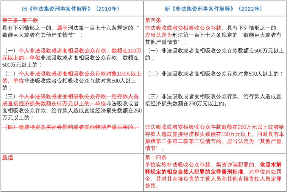 此外,新《非法集資刑事案件解釋》還在第十四條中以“注意規定”的形式,明確指出單位實施相應犯罪以自然人犯罪的定罪量刑標準進行處罰。