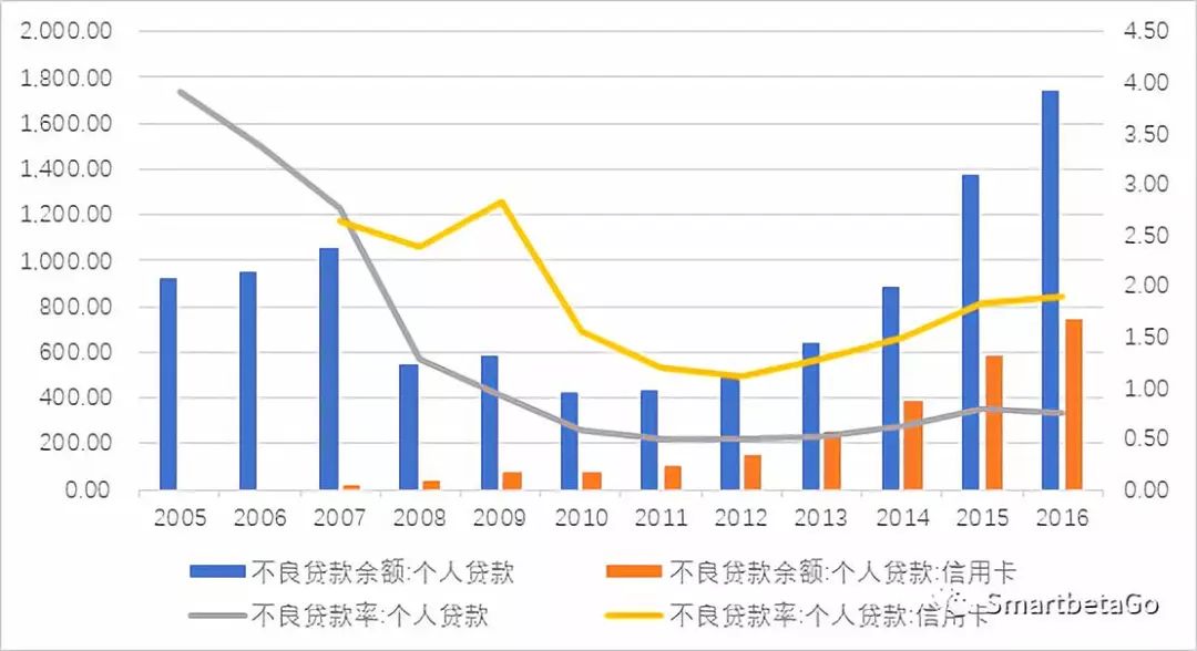 圖一:個人貸款、信用卡不良余額及不良率