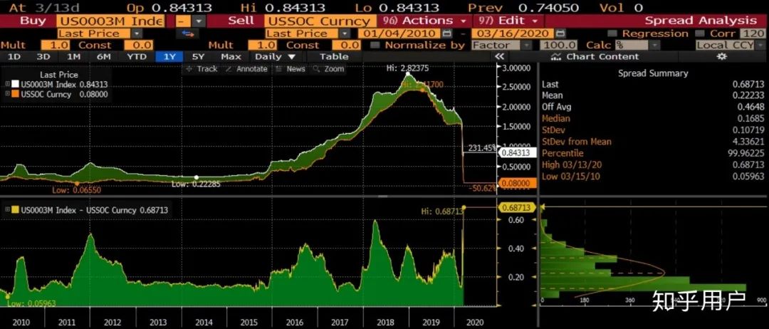 同時,受油價暴跌影響的能源企業以及受疫情影響的航空等企業信貸狀況普遍惡化,引發了美國金融市場的信貸危機,銀行間市場發生擠兌,進而引發流動性危機。作為避險資產的黃金遭到拋售,金價大幅下跌,銀價更是慘不忍睹;反映全球銀行體系信貸壓力的美元LIBOR-OIS利差也升至高位,銀行間拆借意愿明顯下滑。