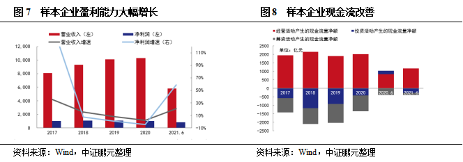 四、上半年樣本企業(yè)收入及利潤(rùn)大幅增長(zhǎng),經(jīng)營(yíng)性現(xiàn)金流改善,償債壓力邊際改善