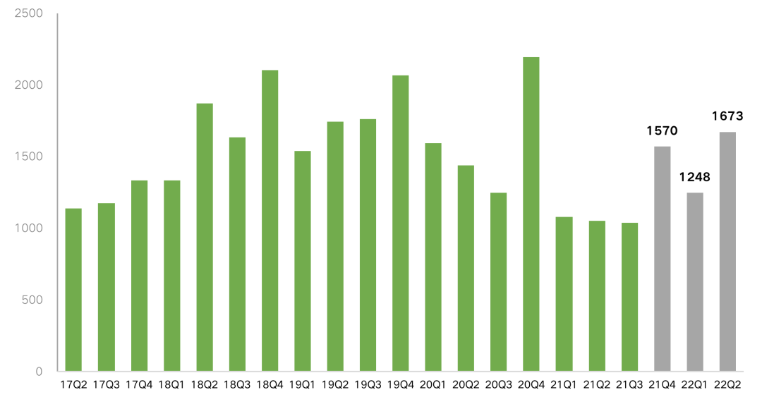 但總體上,中資地產美元債境外新發仍處于相對停滯的狀態,主要是由于債券的二級市場價格波動大,影響了房企的再融資,同時房地產行業調控政策收緊,百強房企頻頻暴雷,也影響了投資人對房地產行業的信心。