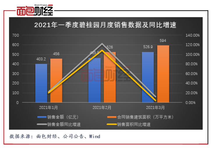 此外,碧桂園公布了2021年一季度銷售數據。公司2021年1-3月累計月銷額、月銷面積分別為1395.6億元、1576萬平方米,同比分別增長38.34%、31.11%。