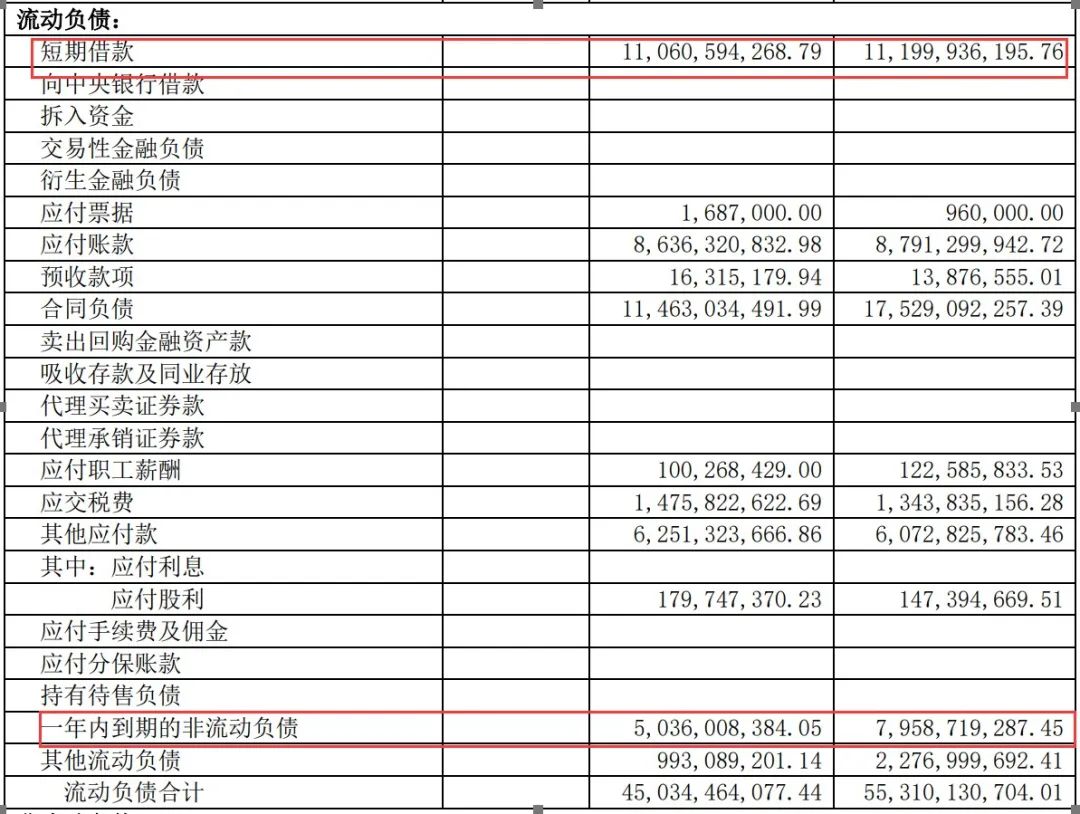 2021年資產負債率不降反升,從前一年的83.45%漲到89.94%。貨幣資金同比降了8億左右為23.09億元。但短期借款在上升,從2020年的8.7億元增加到2021年的11.24億元。1年內到期的非流動負債同比下降12.3%,為91.50億元。