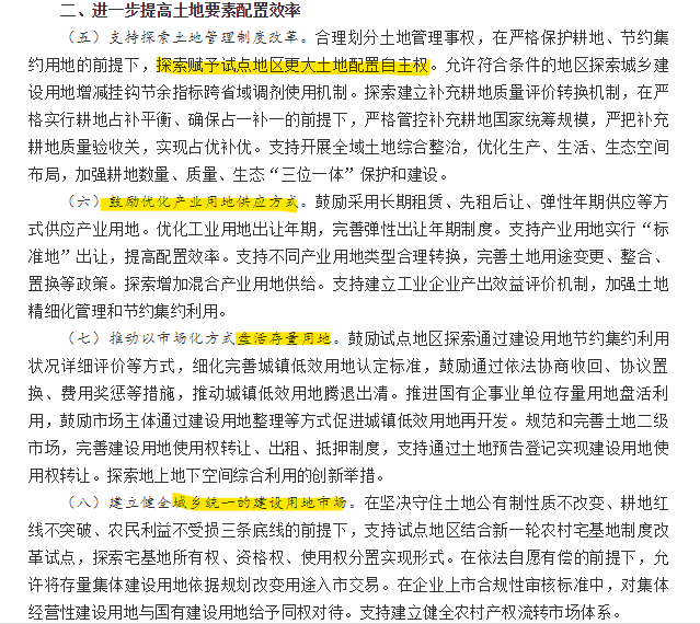 同樣“第七條推動以市場化方式盤活存量用地”,也是讓國企事業單位及其他企業、農民、農村集體可以有更多收益和可能,也為更多企業獲得需要的土地,提供便利。