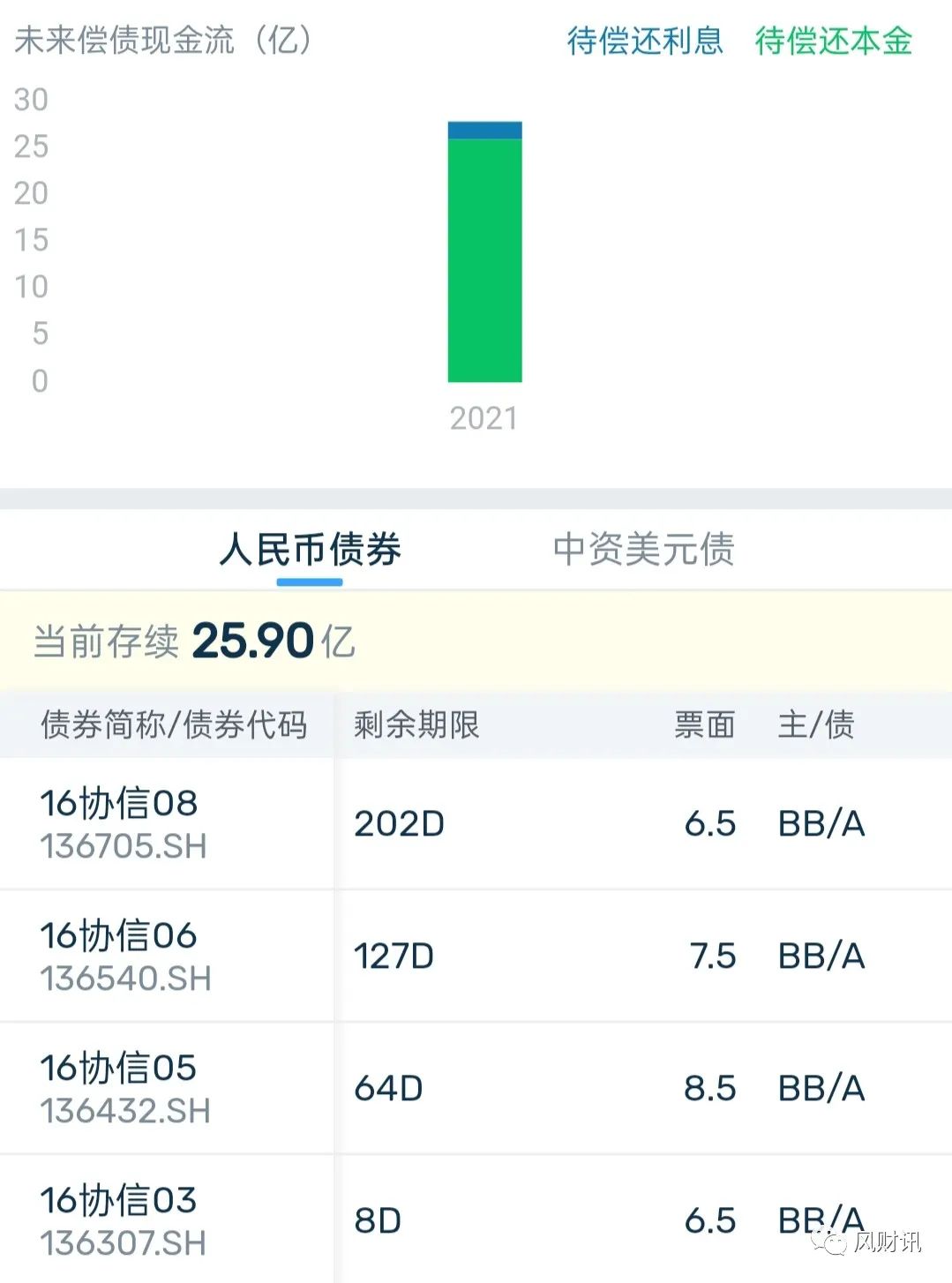 3月9日,18協信01私募債到期,16協信03將在3月17日到期,發行主體為重慶協信遠創實業有限公司。