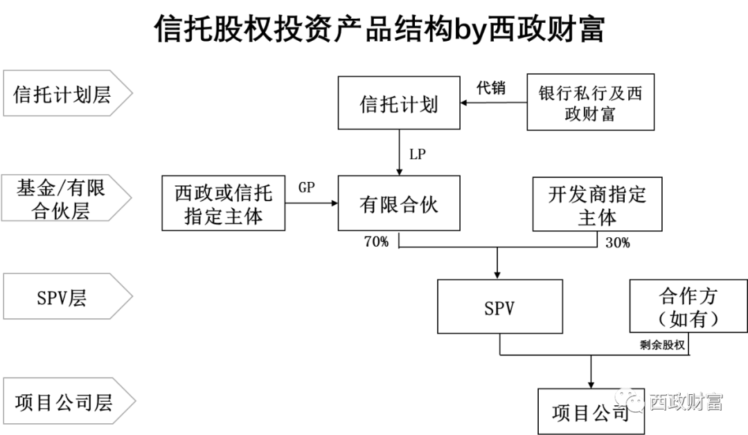 2.西政作為GP發(fā)起設(shè)立有限合伙企業(yè),集合信托計劃認購合伙份額,如有限合伙企業(yè)為基金形式,則信托計劃與基金同時備案;GP的擔任具體可與信托機構(gòu)協(xié)商,并根據(jù)其監(jiān)管要求予以調(diào)整;