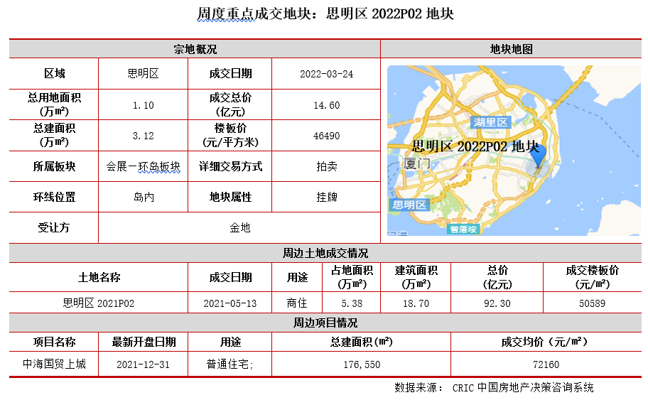 原標(biāo)題: 土地周報(bào) | 土地成交量價(jià)環(huán)比齊漲,廈門、合肥22年首拍明顯回暖(3.21-3.27)