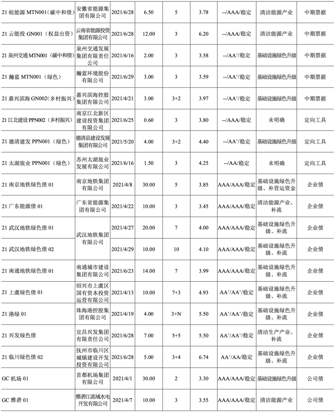 2021年4月12日,中債研發中心和深圳客戶服務中心聯合發布《中債-綠色債券環境效益信息披露指標體系(征求意見稿)》及2020年“實質綠”信用類債券樣本券環境效益信息披露數據,向社會公開征求意見。指標體系針對綠色行業6個大行業203個子行業,設計了30個通用指標和13個特殊指標(適用于單一行業)。同時,按照指標體系,對2020年度發行的327只“實質綠”信用類債券募集說明說書中披露的相關環境效益信息進行摘錄、歸集,與指標體系同步發布并征求意見。(摘自中國債券信息網,2021年4月12日)