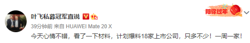 被點燃了小宇宙的葉飛,計劃爆料10家上市公司,包括:中源家居、東方時尚、今創集團、維諾信、昊志機電、華鈺礦業、祥鑫科技、隆基機械、法蘭泰克、眾應互聯(ST眾應)。