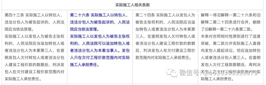 三、《最高人民法院關(guān)于審理建設(shè)工程施工合同糾紛案件適用法律問(wèn)題的解釋》(一)第四十三條 實(shí)際施工人以轉(zhuǎn)包人、違法分包人為被告起訴的,人民法院應(yīng)當(dāng)依法受理。實(shí)際施工人以發(fā)包人為被告主張權(quán)利的,人民法院應(yīng)當(dāng)追加轉(zhuǎn)包人或者違法分包人為本案第三人,在查明發(fā)包人欠付轉(zhuǎn)包人或者違法分包人建設(shè)工程價(jià)款的數(shù)額后,判決發(fā)包人在欠付建設(shè)工程價(jià)款范圍內(nèi)對(duì)實(shí)際施工人承擔(dān)責(zé)任。