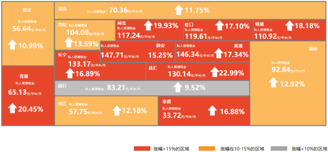 圖:上海市市個人房源租金價格及同比地圖