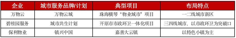盡管頭部企業在城市服務的具體布局上各有側重,但企業城市服務品牌的建立和標桿項目示范作用打造,已形成一定的標桿效應。