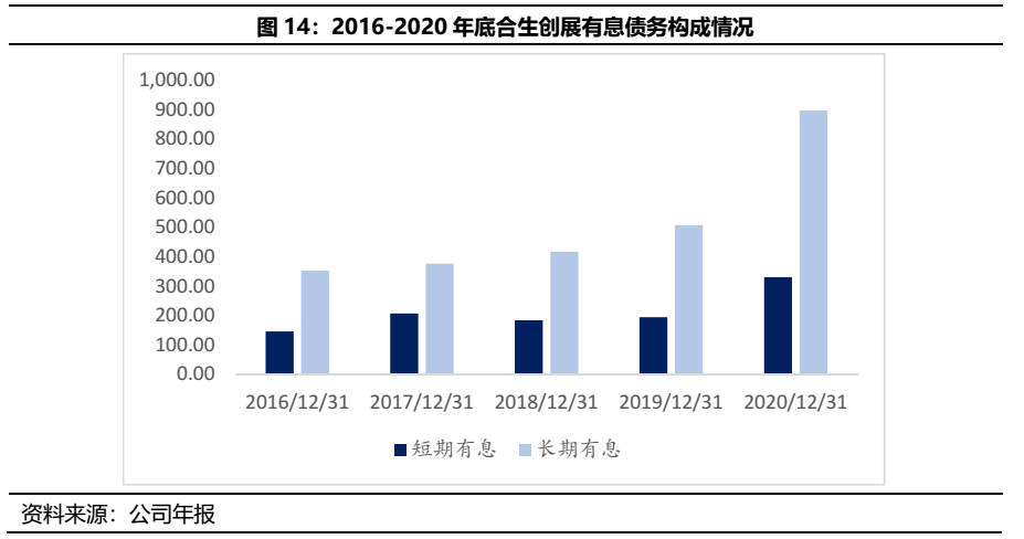 雖然相關(guān)監(jiān)管指標(biāo)尚可,但是隨著近年來(lái)公司加快周轉(zhuǎn)、擴(kuò)大業(yè)務(wù)版圖,有息債務(wù)規(guī)模持續(xù)攀升。主要由于長(zhǎng)期債務(wù)規(guī)模的的擴(kuò)大,截至2020年末,合生的有息債務(wù)達(dá)到1,227.13億元,較上年末同比增長(zhǎng)了75%。