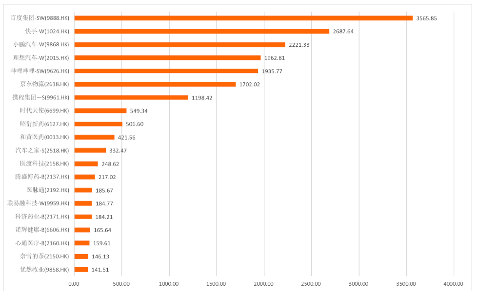 今年以來,快手(1024.HK)、百度(9888.HK)、嗶哩嗶哩(9626.HK)、小鵬(9868.HK)、理想(2015.HK)、攜程(9961.HK)等均在港股上市,第四范式(1590.HK)、商湯集團(1600.HK)、有贊科技(1434.HK)等陸續在港交所交表。