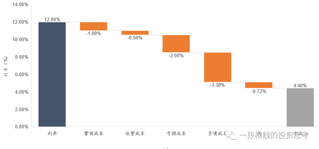 在這一商業(yè)模式下,風(fēng)險成本控制對經(jīng)營機構(gòu)來說只是獲得利潤最大化的手段而非目的。零售信貸機構(gòu)對風(fēng)險成本的管理主要體現(xiàn)為盡量控制年化風(fēng)險成本表現(xiàn)穩(wěn)定,非追求年化不良率的絕對水平最低。