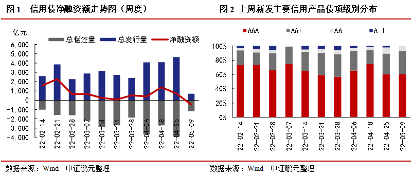1.上周信用債發行699.03億元,凈償還460.37億元,分別較前一周下降85%和163%