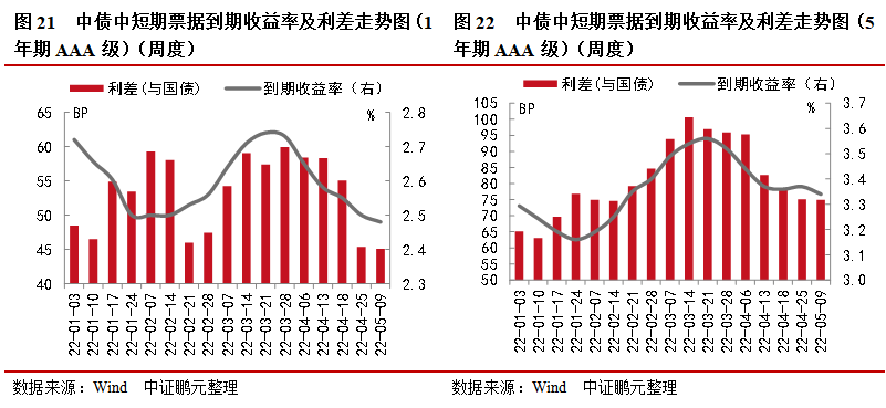 上周中票、一般公司債平均發行利率利差下行收窄,短融平均發行利率利差上行走擴;