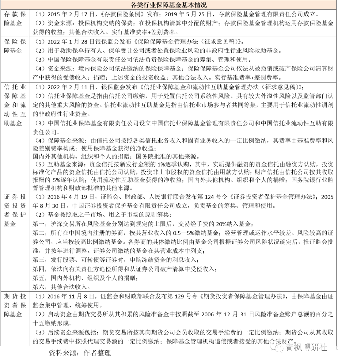 (三)國內行業保障基金情況簡述(與金融穩定保障基金雙層運行)