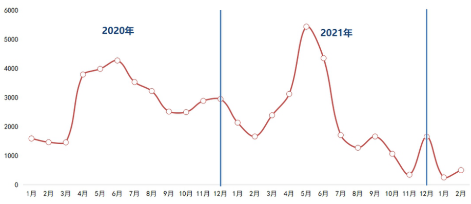 注:2022年2月數據截止2月24日,下同。
