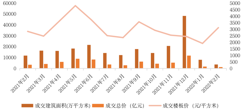 從樓板價來看,受北京首輪集中土拍影響,2月份平均樓板價增至3112元/平方米,環比漲幅高達63%。