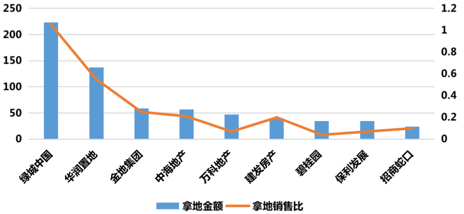 盡管部分房企前兩月拿地金額保持領先,但從拿地銷售比來看,僅有華潤、綠城高于0.4,其余房企均在0.2以下,由此可見整體投資意愿仍然保持低位。