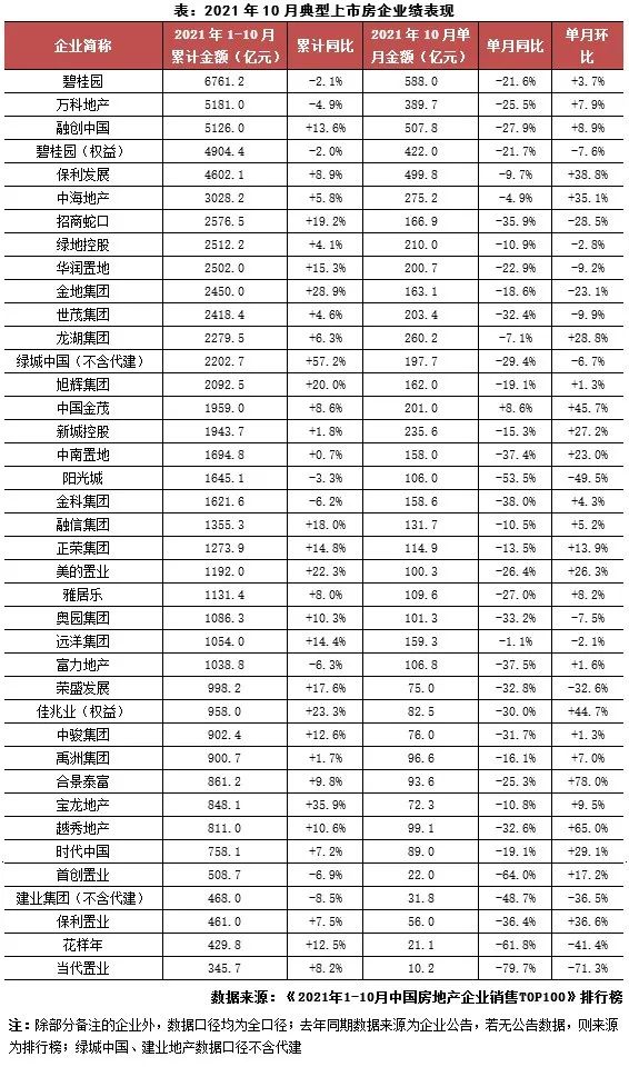 原標(biāo)題: 企業(yè)月報(bào)|百強(qiáng)10月業(yè)績與上月基本持平,典型房企拿地總額降至新低(10月)