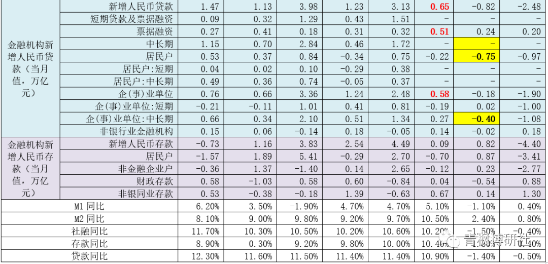 我想更為關注的是,這次有4個指標未公布,即短期貸款及票據、中長期貸款、居民短期貸款和居民中長期貸款。同時,針對上述四個指標,央行在表述上似乎換了口徑,如披露了住房貸款、不含住房貸款的消費貸款以及經營性貸款等。