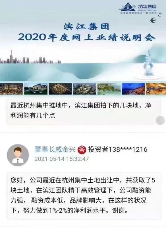 最近,在濱江集團官網(wǎng),網(wǎng)上業(yè)績說明會中,濱江戚老板對一名投資者的問題回答,火爆了地產(chǎn)圈,堪稱最實誠的上市房企,也揭露了當(dāng)下房地產(chǎn)行業(yè)現(xiàn)狀