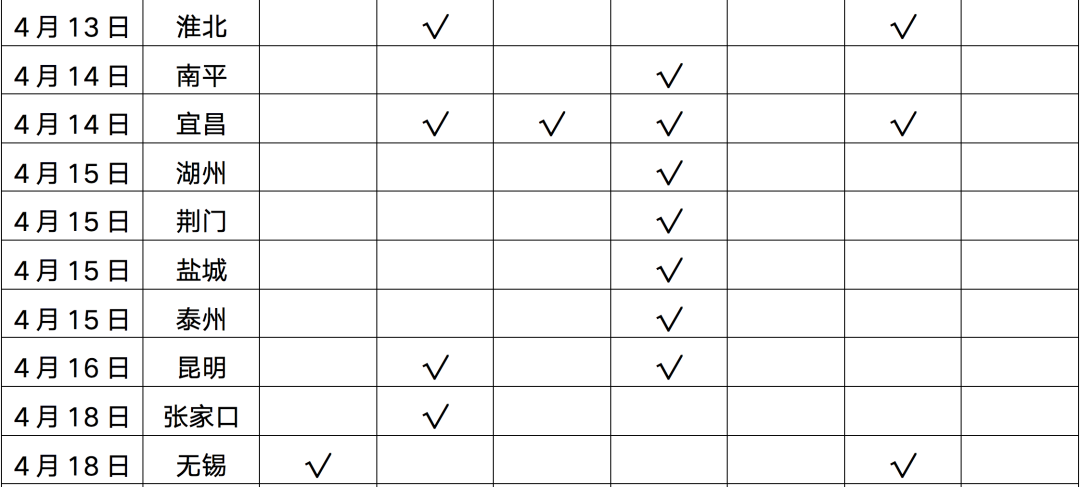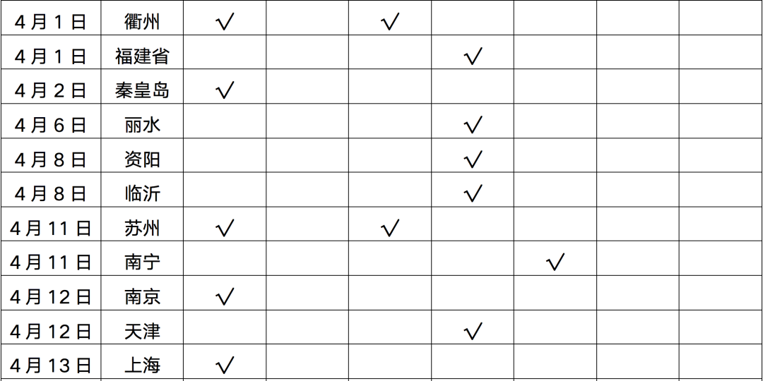 表:2022年1-4月政策松綁城市