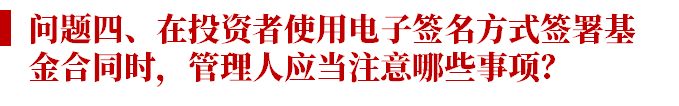 而在此需要提示管理人的是,最好充分評估電子簽約平臺的持續(xù)經(jīng)營能力和在發(fā)生投資者爭議事件時的立場,確保能夠在需要時獲得必要的協(xié)助。